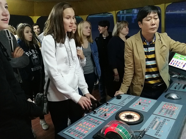 俄罗斯中学生体验航海模拟驾驶