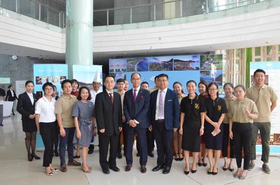 学院领导与亚特兰蒂斯酒店高管在展位前合影