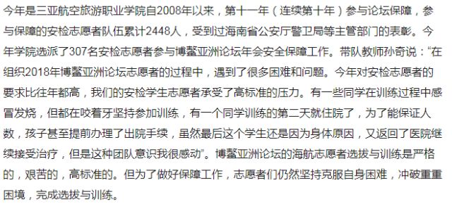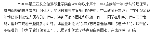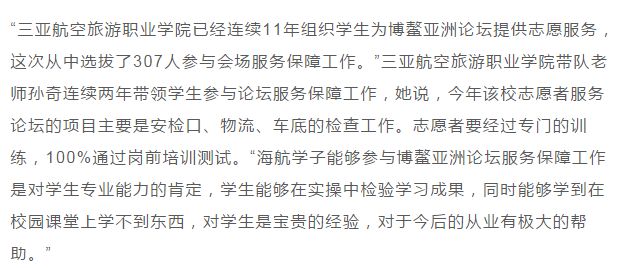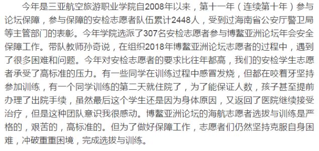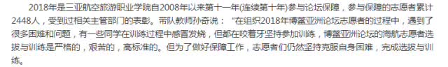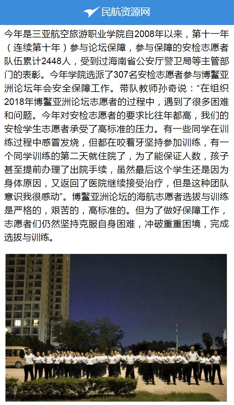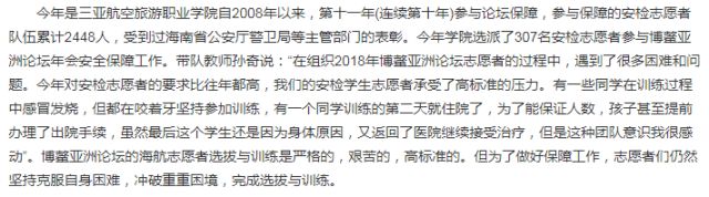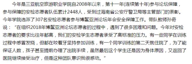 作为海南省公安厅正式授牌的博鳌亚洲论坛安检人员培训基地,在这11年间,beat365正版唯一官网共派出了安检专业2755名学生参与论坛保障:他们全力以赴,高标准要求,高标准执行,圆满完成了海南省公安厅交办的安保任务。作为世界五百强企业海航集团创办的高校,这是学院秉持海航精神,始终将社会责任作为自身战略发展目标之一,坚定践行自身社会责任所交出的一份“答卷”。