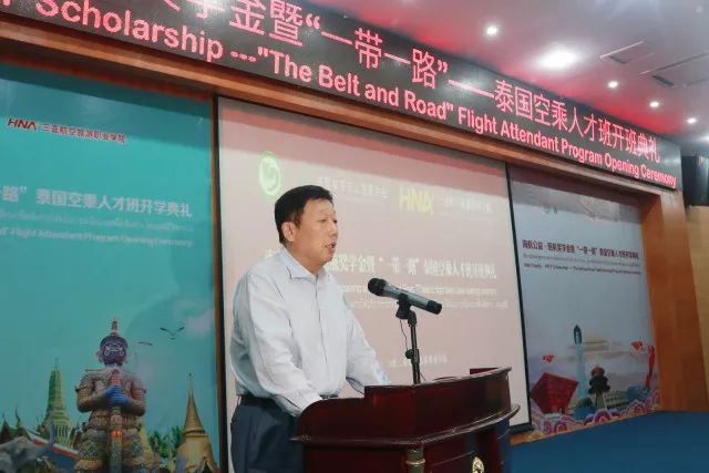 5月18日,海航公益·慈航奖学金暨“一带一路”——泰国空乘人才班开班典礼在我院举办。此次泰国空乘人才班项目是由海南省慈航公益基金会提供奖学金,泰国海上丝路孔子学院协助招生,来自泰国玛希隆大学、孔敬大学、国立法政大学等知名高等学府的30名泰国优秀大学生将在我院进行为期三个月的航空类培训。