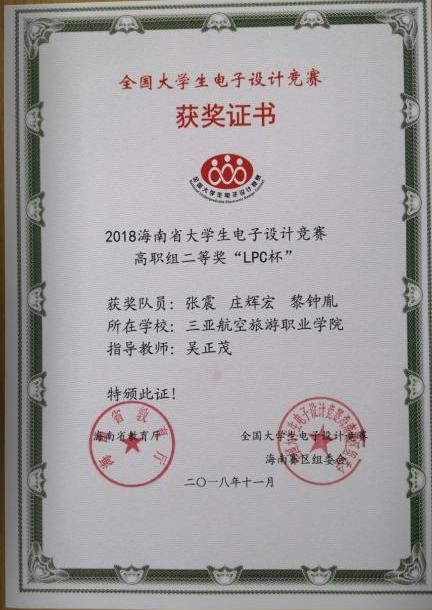 由海南省教育厅主办的“'恩智浦LPC杯'2018海南省大学生电子设计竞赛”于近期落下帷幕,我校机电工程学院选派的2支参赛队伍分别获得了高职组省级一等奖和二等奖的好成绩。