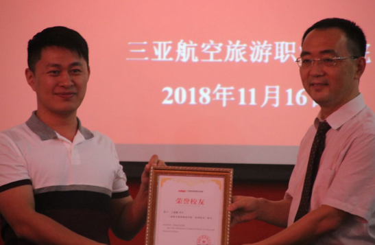 最后杨涵涛校长向海南瀚铭房地产投资有限公司赠送了感谢信和礼物,为丁亚健校友和斯日古楞校友颁发了“荣誉校友”证书。