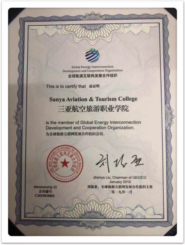 2019年1月,我校正式加入全球能源互联网发展合作组织,成为该组织会员。全球能源互联网发展合作组织是以“推动构建全球能源互联网,以清洁和绿色方式满足全球电力需求”为宗旨,由中国国家电网公司发起成立,是中国在能源领域发起成立的首个国际组织,也是全球能源互联网的首个合作、协调组织,我校是海南省第一家高等院校会员单位。