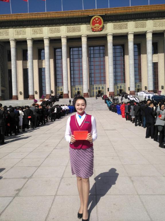 我校2015届空乘专业毕业生马嘉鸿作为往届全国“两红两优“代表赴首都北京参加在人民大会堂举办的“纪念五四运动100周年大会”