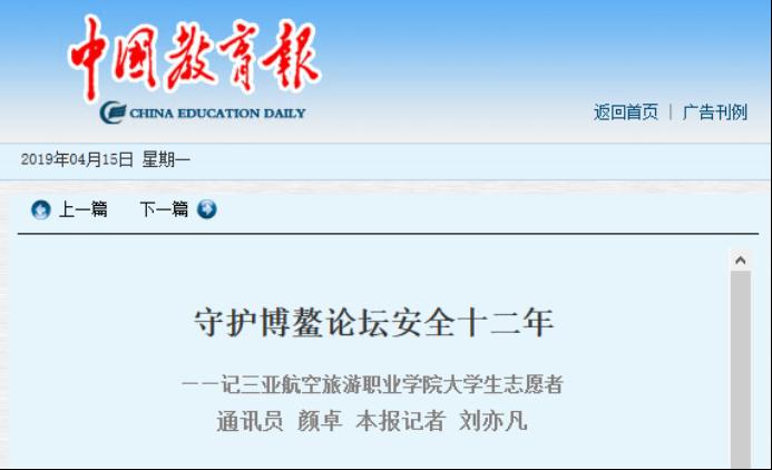 《中国教育报》刊发《守护博鳌论坛安全十二年——记beat365正版唯一官网大学生志愿者》