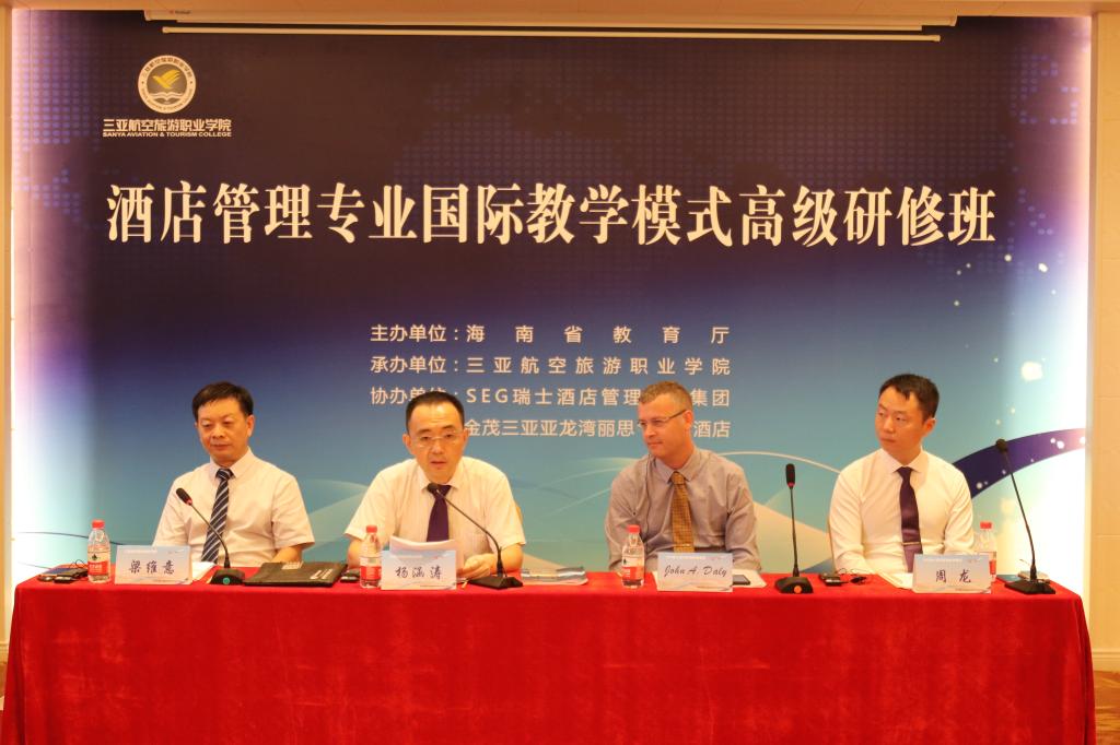 2019年7月1日至5日,海南省酒店管理专业国际教学模式高级研修班在三亚如期举行。本次研修班由海南省教育厅主办、beat365正版唯一官网承办,并邀请了全球酒店管理大学排名第一的瑞士SEG酒店管理教育集团以及著名奢华酒店品牌三亚金茂丽思卡尔顿酒店共同协办。来自省内外共计23所本科、高职院校的58名学员参加了此次培训。