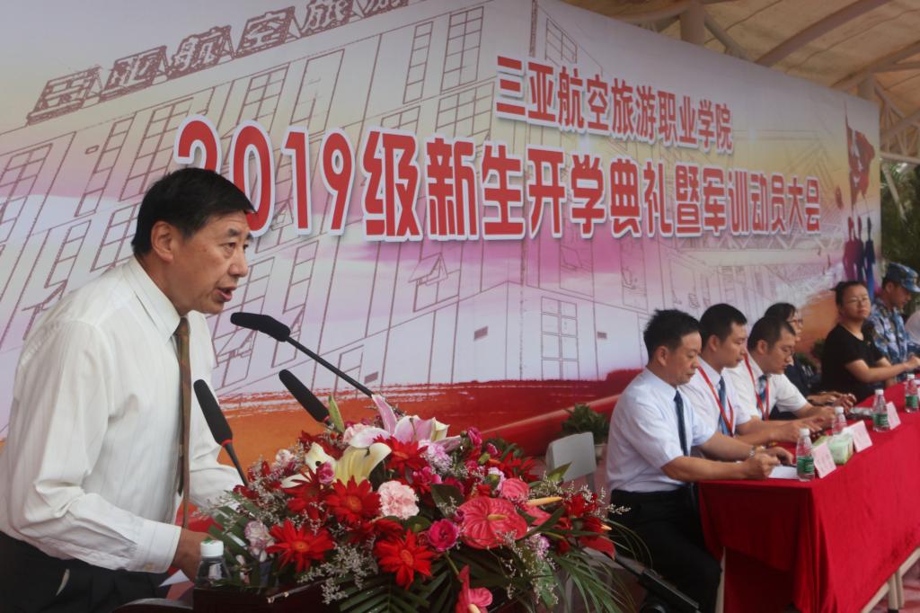 2019年9月3日7:00,beat365正版唯一官网2019级新生开学典礼暨军训动员大会在学校体育运动场举行。2019年全体新生、2019级部分新生家长、全体教职工参加典礼。91922部队副参谋长张硕上校、三亚市天涯区人民武装部部长白朝辉上校、92823部队副大队长汪学迪中校、学校党委书记、董事长兼校长杨涵涛、学校副校长秦传松、纪委书记庄瑛等学校领导出席典礼。典礼由党委副书记、副校长梁维意主持。