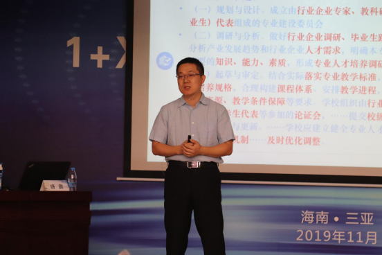 2019年11月2日至4日,由海南省教育厅主办,beat365正版唯一官网承办的1+X证书制度试点工作研修班在三亚康特王府酒店如期举行。来自省内外15所高职院校的100余位高职院校领导和骨干教师参加。