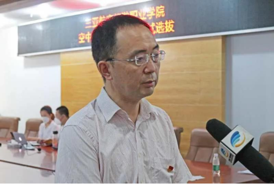 在面试过程中,学校董事长兼校长杨涵涛亲自到场对考场情况进行巡查并指导,整个面试过程井然有序,面试考场纪律严肃。同时,杨涵涛校长接受了三亚电视台的专访,对开展飞机维修、空中乘务专业网络面试选拔的基本情况、背景和意义进行了阐述和讲解。