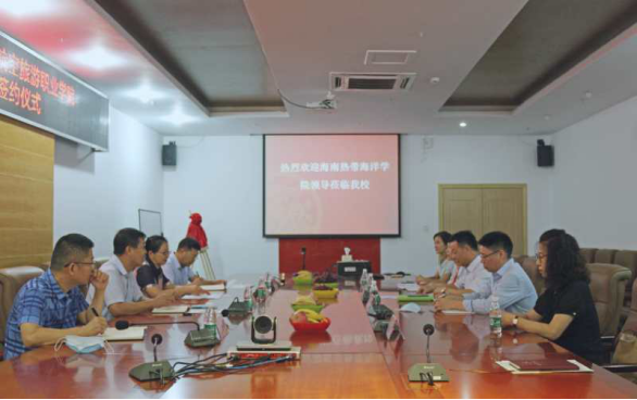 2020年6月28日上午,我校与海南热带海洋学院在学校图书馆1号会议室举行“共建思政教学部”签约揭牌仪式。海南热带海洋学院马克思主义学院院长宁波、党总支书记邢启敏、副院长李纪岩、思政教学部主任陈张承和我校党委副书记、副校长梁维意、人文学院院长陈磊、思政教学部主任史金红以及思政教学部部分教师出席签约揭牌仪式。仪式由陈磊院长主持,并致欢迎辞。
