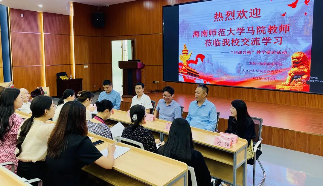为打造高效思政课堂,提高教学质量、更新教学观念、转变教学方式、增强校际间思政师资队伍的教学能力提升。2021年10月28日,由陈连珠教授带队的海南师范大学马克思主义学院基础教研室一行7人来访我校,与人文社科学院思政教学部全体专兼职教师在一教306报告厅进行“同课异构”教学研讨与考察活动。
