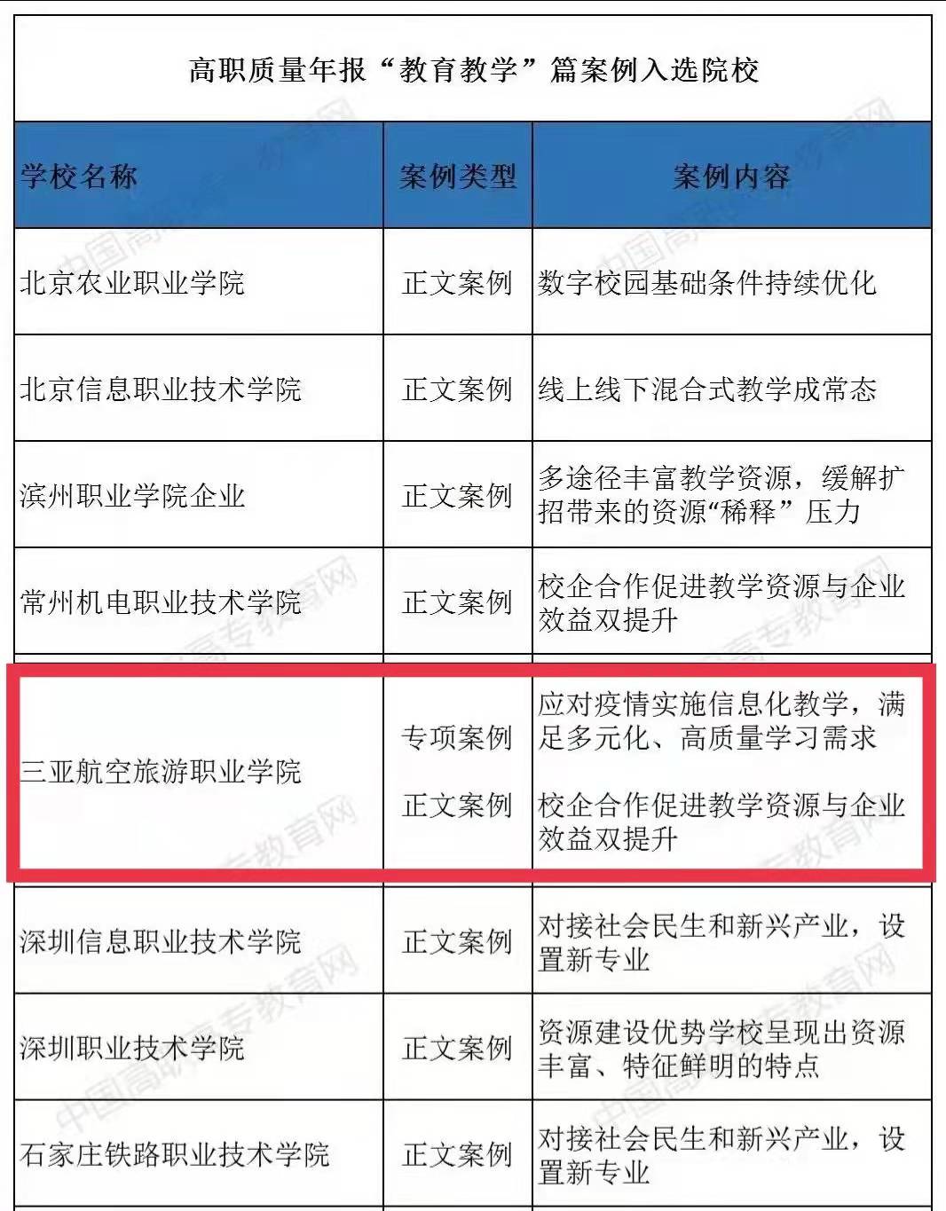高职质量年报“教育教学”篇案例入选部分院校名单