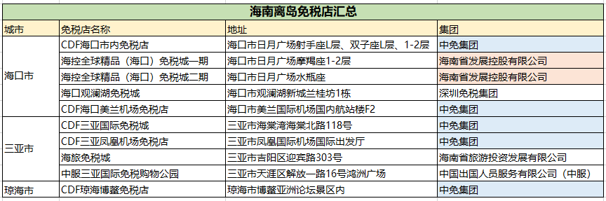 海南目前现有10家离岛免税店,其中海口5家、三亚4家、琼海1家。