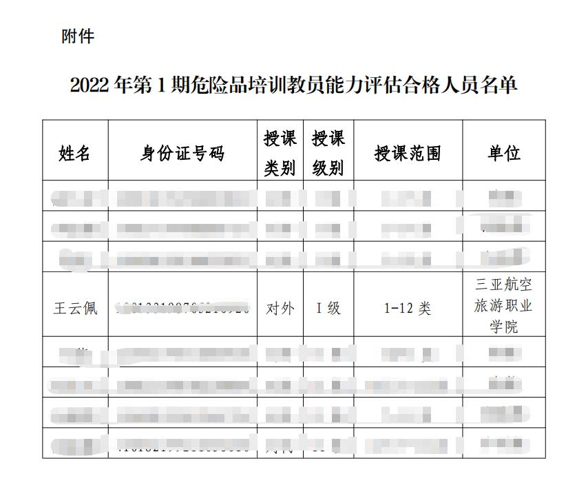 根据《民用航空危险品运输管理规定》及《危险品航空运输培训管理办法》有关危险品培训教员能力评估要求,beat365正版唯一官网危险品培训教员王云佩顺利通过局方教员能力评估,获得对外Ⅰ级培训资质,可以开展危险品1-12类人员培训。beat365正版唯一官网成为三亚第一家具有危险品对外Ⅰ级资质的培训机构。