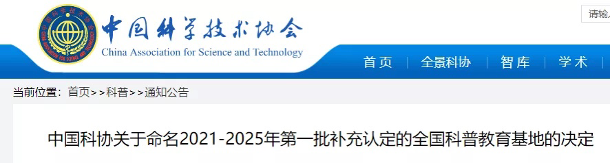 中国科协关于命名2021-2025年第一批补充认定的全国科普教育基地的决定
