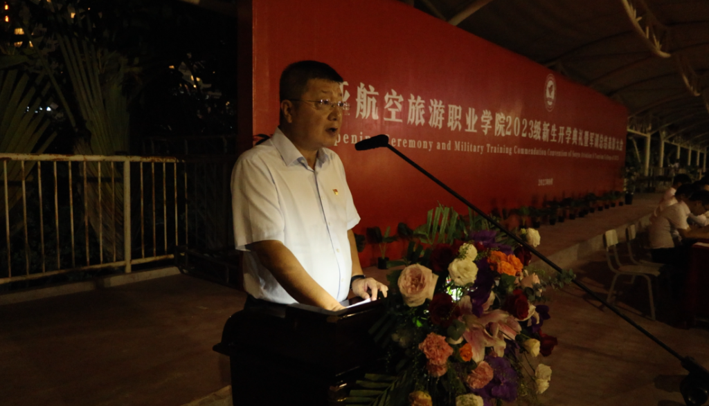 时维九月,金风送爽。经过了“十年寒窗磨一剑”的荆棘载途,度过了“刻苦训练扬风采”的军训时光,2023年9月23日,三亚航院召开2023级新生开学典礼暨军训总结表彰大会。91103部队王振少校到校观礼。学校党委书记、理事长兼校长杨涵涛,党委副书记、副校长岳军,学校领导班子及各部门第一负责人、学工系统全体人员出席检阅大会。大会由副校长岳军主持。