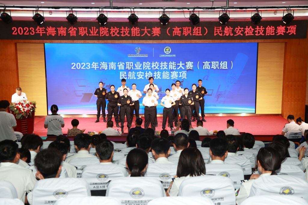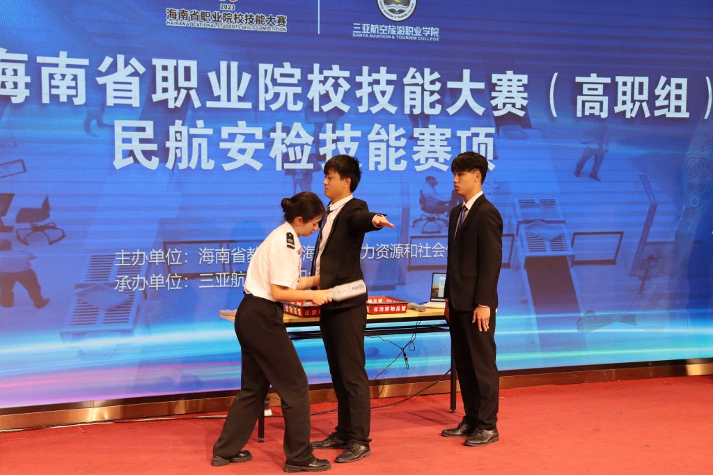 通过此次大赛,不仅为师生切磋技艺、交流经验、提高技能搭建了平台,同时进一步凝聚政行企校共识,务实合作,紧密交流,加强“敬畏生命、敬畏规章、敬畏职责”的作风建设,坚持“安全第一、严格检查、规范执勤”的安检工作原则,为建设交通强国民航新篇章而奋斗,为海南自由贸易港建设培养更多优秀高素质技能型人才。