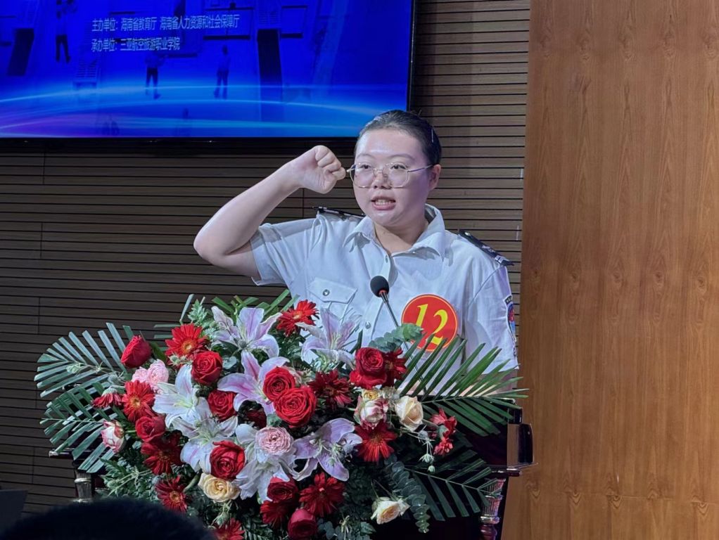 三亚凤凰国际机场杨春蓝代表裁判组对竞赛环节进行点评