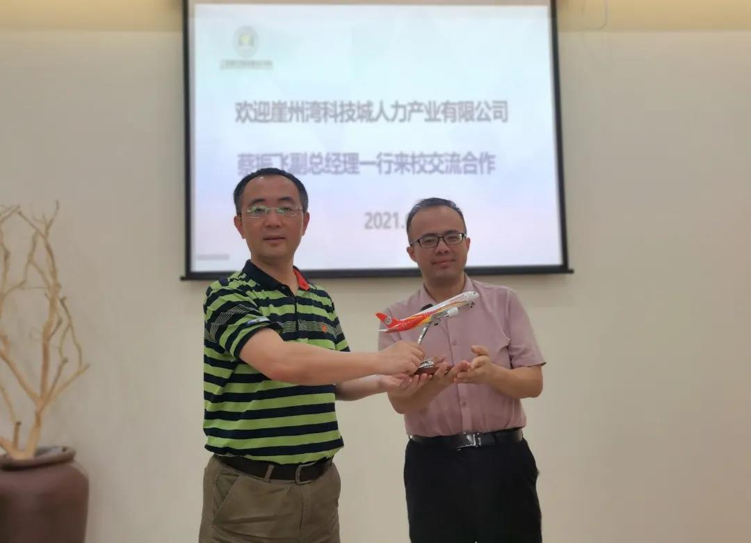 2021年6月1日上午,三亚崖州湾科技城人力产业有限公司副总经理蔡振飞一行来访我校,学校党委书记、董事长兼校长杨涵涛在校迎接。