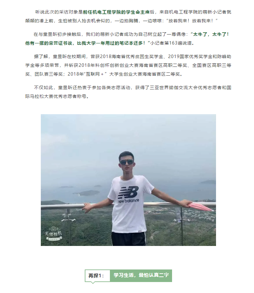 榜样力量丨童昱昕:生活,无非认真二字