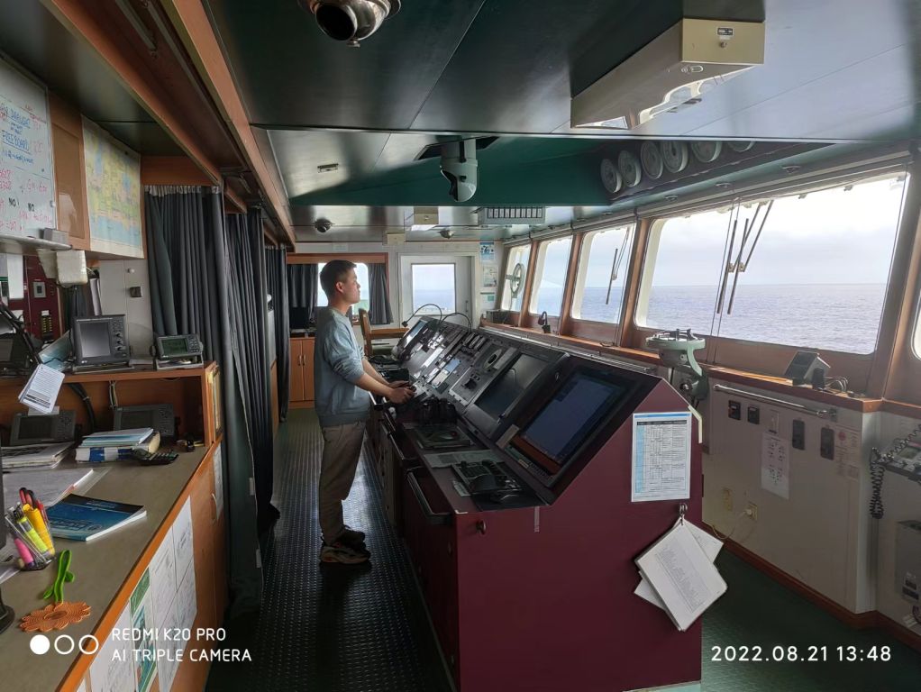 在“CL EDI”(艾迪)轮上实习期间,覃学山学到了很多。刚上船时,他便在驾驶台上进行了操舵练习。掌握该船舵效后,他又学习了如何使用电罗经,GPS,测深仪,雷达,电子海图等航海仪器,交通密度比较大时学习实践中是如何避碰,如何呼叫他船以及回应他船。夜晚时他还会看看附近他船的号灯,是否与教材上所教的号灯一致。