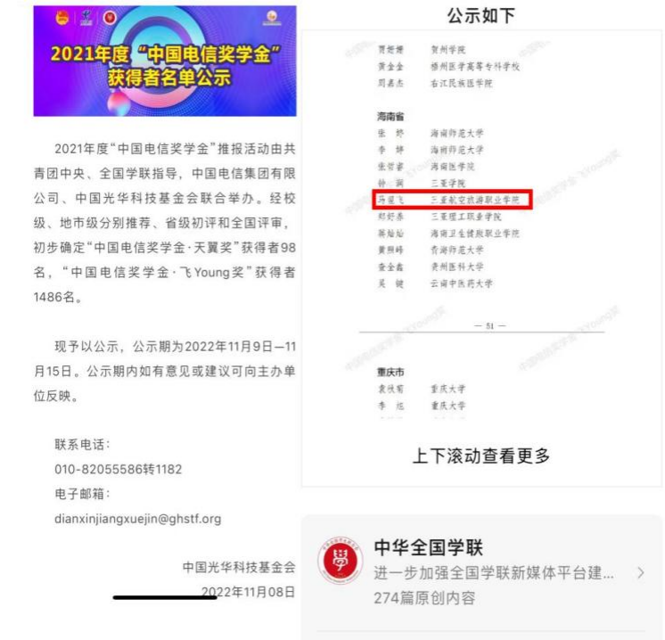 马翌飞是人文社科学院计算机网络技术2001班学生,在校期间担任班长及院学生会主席职务。成绩优异,表现突出。曾获得2020-2021年度国家奖学金,2021-2022年度国家励志奖学金,共青团中央、中国学联中国电信奖学金·飞young奖,同时他发挥自己专业优势,积极参加各项专业比赛,曾获得2021 年第三届全国高校计算机能力挑战赛”国赛二等奖等,提升自己能力的同时为学院和学校赢得荣誉。